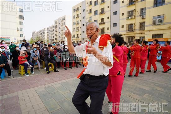 2023年4月18日,志愿者在表演新疆小曲子。