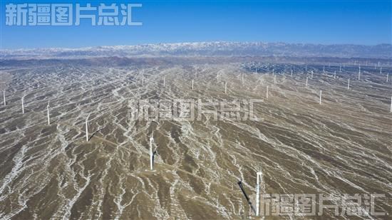 新疆生产建设兵团第六师北塔山牧场风光电场外景(2023年2月21日无人机拍摄)。