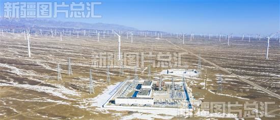 新疆生产建设兵团第六师北塔山牧场风光电场外景(2023年2月21日无人机拍摄)。