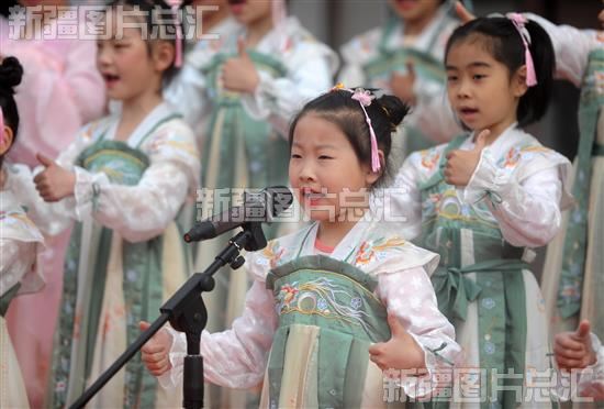 2023年4月23日,乌鲁木齐市第三十九小学一年级学生在诵读活动现场。
