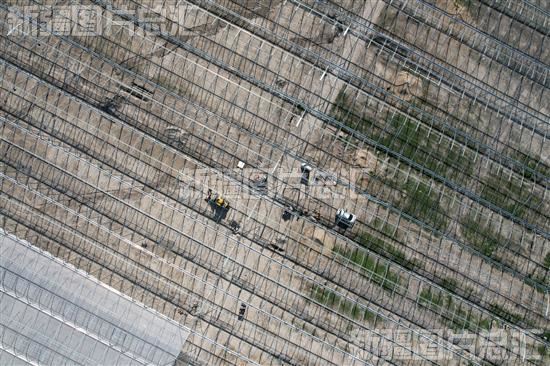 2023年4月22日,从空中俯瞰正在搭建的霍尔果斯现代农业科技产业园智能温室(无人机拍摄)。