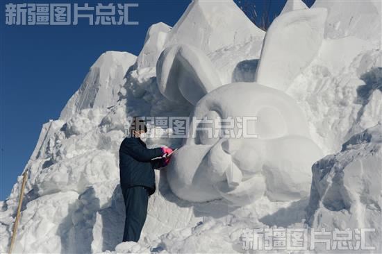 玉兔雪雕迎新年