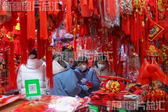 春节临近,博乐市市民纷纷选购灯笼、春联、中国结等新年饰品,置办年货,迎接新春佳节的到来。