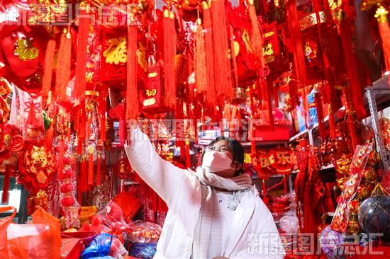 2023年1月3日,市民在博乐市亚中市场选购春节饰品。