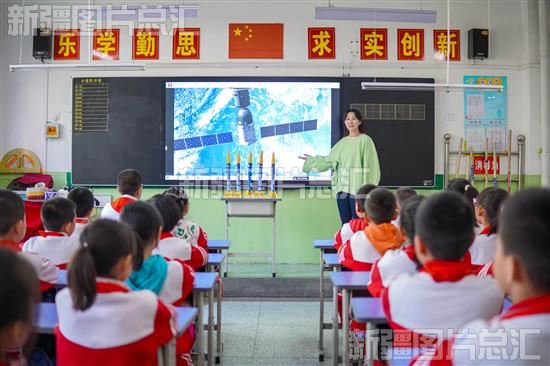 2023年4月24日,昌吉市第八小学开展“中国航天日”主题班会课,老师向同学们介绍中国航天事业发展历史。