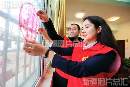 关键字:贴窗花 迎新年 库车市阿拉哈格镇吉日木勒村 春节 新年 慰问 祝福 民生