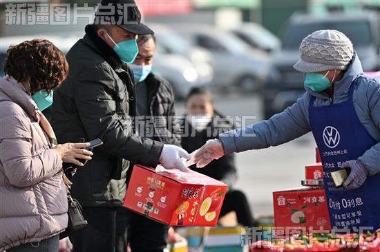 2022年12月28日,市民在库尔勒九鼎梨城农产品批发市场选购水果。