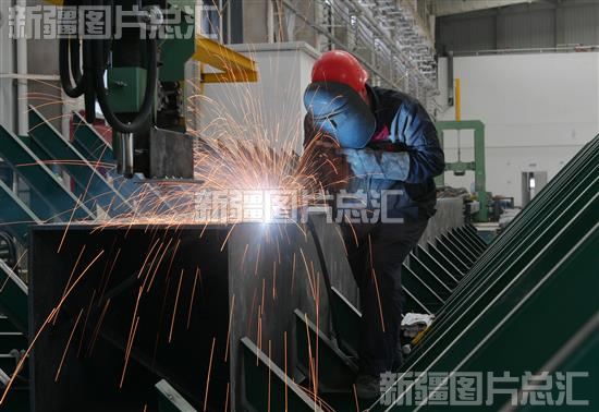 关键字:伊犁哈萨克自治州 伊犁州 霍尔果斯市 产业园 城乡建设 霍尔果斯 口岸 标准化厂房 建设项目 工人 工作人员 施工 电焊 钢结构配件 作业