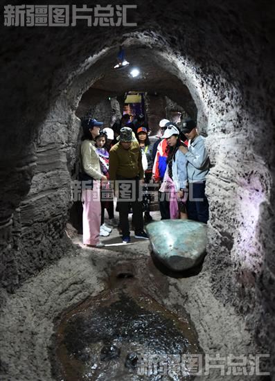2023年4月24日,游客在吐鲁番坎儿井源景区参观坎儿井。