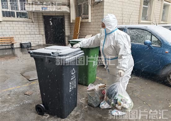 2022年11月8日,天山区南湾街街道波斯坦巷社区干部为居民清倒垃圾。