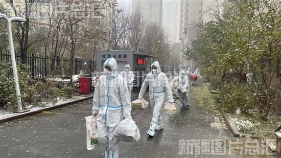 当日,乌鲁木齐迎来降雪天气,坚守在抗击疫情一线的社区干部、志愿者们舍小家为大家,冒着风雪为居民配送生活物资,服务居民。