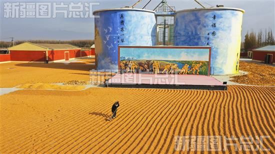 关键字:农林牧渔业 新疆生产建设兵团第二师二十一团八连 晾晒玉米 颗粒归仓 丰收 玉米 种植