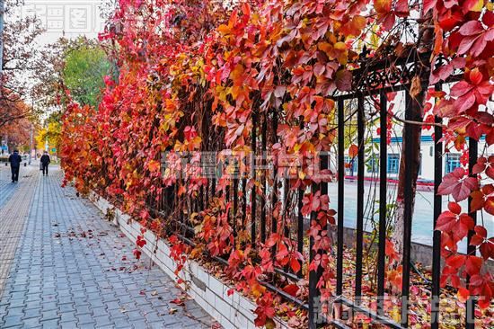 2022年11月7日,伊宁市斯大林西路沿街的爬山虎。