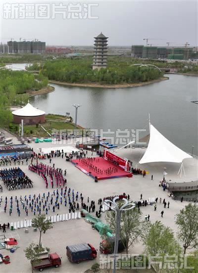 2023年4月23日是第28个世界读书日。当日,库尔勒启动2023年“书香巴州·全民阅读”暨“世界读书日”活动并千人诵读《 天耀中华 》(无人机拍摄)。