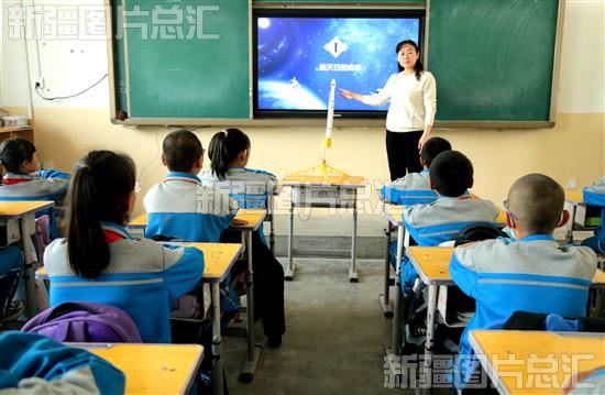 2023年4月24日,新疆生产建设兵团第二师22团中学的老师给学生讲解航天日的由来。