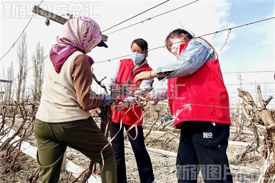 眼下,正是葡萄开墩时节,沙湾市农业农村局驻金沟河镇泉水沟村工作队和村“两委”组织村干部、工作队员、农村党员组成助农志愿服务队,帮助缺少劳动力的农户为葡萄苗清土、拉藤、上架、清沟等,确保不误农时。