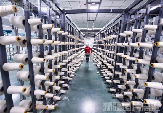 关键字:阿克苏地区 沙雅县 循环经济工业园区 纺织 纺纱 阿克苏正伦实业有限公司 生产车间 工人 生产线 纱线 纺织品