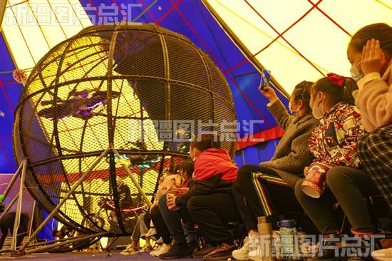 关键字:新疆 乌鲁木齐市 乌鲁木齐高新区(新市区) 新疆体育中心 吴桥杂技 马戏团 马戏表演 市民 群众 观众 欣赏 环球飞车 太空转环 表演