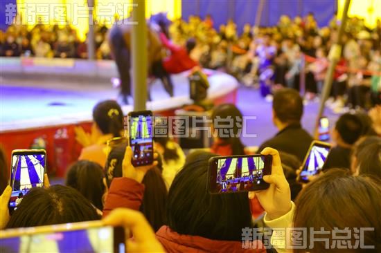 2023年5月2日,在位于新疆体育中心北广场的吴桥杂技马戏演出现场,观众纷纷拿出手机记录精彩瞬间。