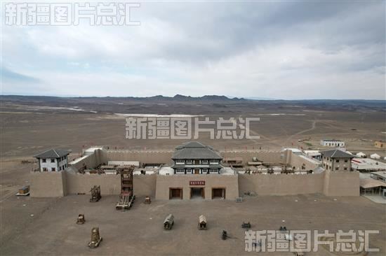 2023年5月5日,克拉玛依市乌尔禾影视城外景(无人机拍摄)。近年来,乌尔禾区依托自然资源,结合市场需求,将影视作品所蕴含的文化与当地特色有机融合,打造集影视拍摄、影视前期制作、器材场地租赁等功能于一体的影游文创目的地。
