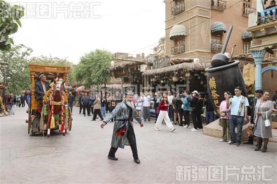 2023年5月7日,在喀什古城景区,巡演的木马车成为景区流动景点。