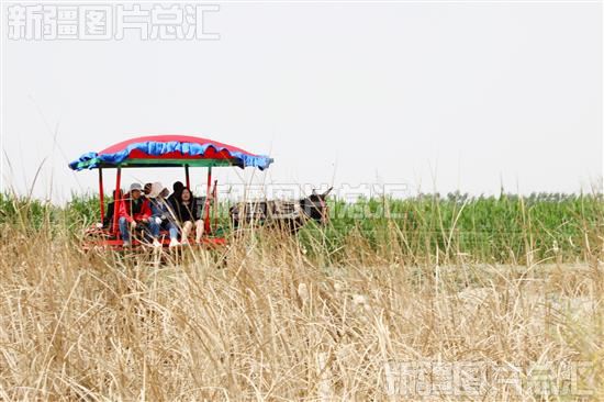 2023年4月29日,游客乘坐驴车穿过乡间小路。