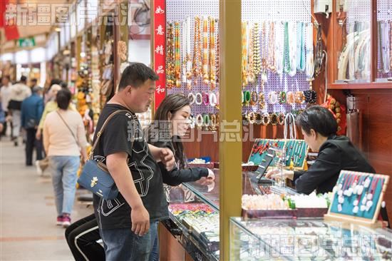 2023年4月30日,游客在新疆国际大巴扎景区购物。