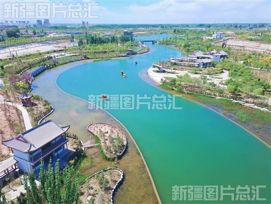 2023年5月1日,阿克苏市迎宾公园景区(无人机拍摄)。