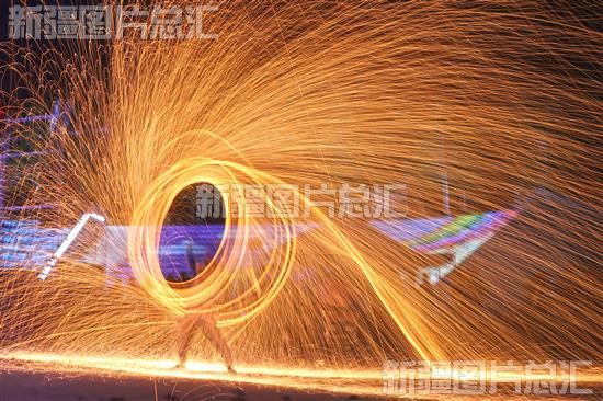 2023年4月28日,民间艺人在郁金香文化旅游节开幕现场进行非遗表演“风火流星”。