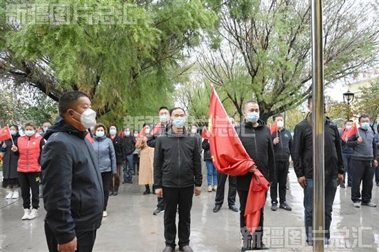 2022年10月1日,塔城地区农业农村局驻沙湾市大泉乡烧坊庄子村“访惠聚”工作队队员和村党员干部群众在大院共升国旗、同唱国歌。