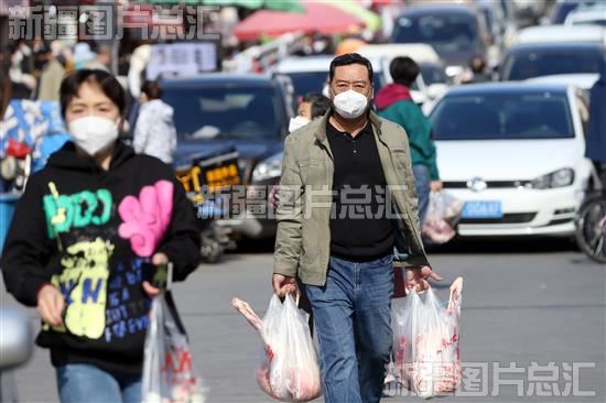 2022年10月2日,乌鲁木齐市天山区新泉街,市民拎着购买的食材。