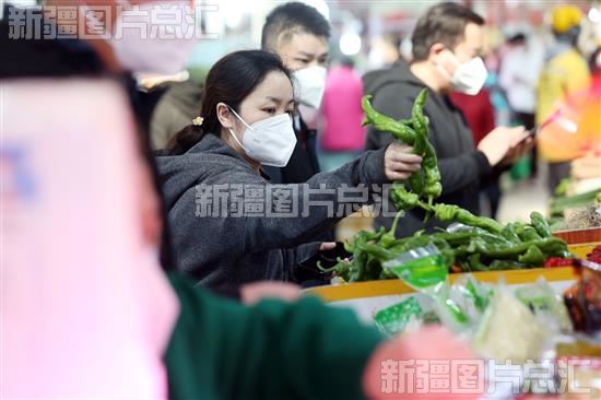 2022年10月2日,位于乌鲁木齐市天山区碱泉三街的农贸市场,市民正在选购蔬菜。