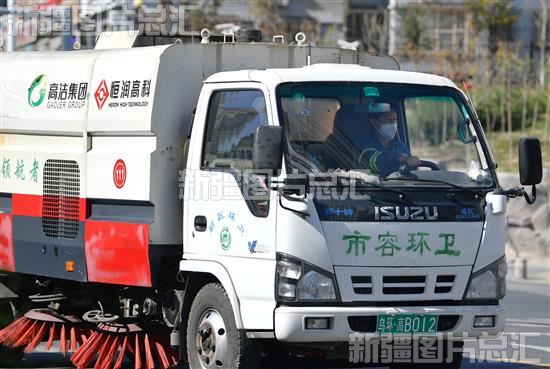 2022年10月2日,环卫工作者驾驶清扫车在乌鲁木齐市四平路清扫。
