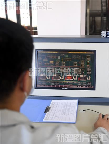 2022年10月2日,新疆华凌工贸(集团)热力有限公司员工在监控燃气锅炉的运行情况。