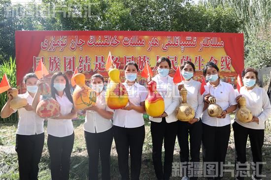 2022年9月30日,在乌什县奥特贝希在宫乡村将军树景点,我们的手工作品合个影。
