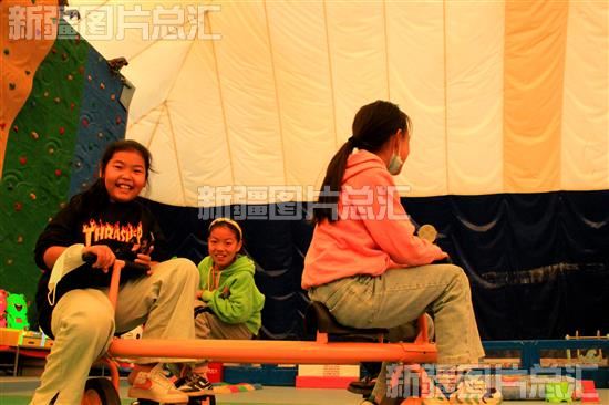 2022年10月1日,孩子们在裕民县儿童游乐园内娱乐。