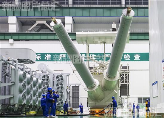 正在北京展览馆举办的“奋进新时代”主题成就展上,新疆单元展出了一件由特变电工股份有限公司生产的±1100千伏换流变压器模型。该变压器用于我国“西电东送”重点工程——准东—皖南±1100千伏特高压直流输电工程。模型上方还展出了一幅工人在准东—皖南±1100千伏特高压直流输电工程新疆段检查设备的图片。图片+模型,高度浓缩地反映了“新疆制造”正在向高端装备制造业稳步迈进的喜人成就。特变电工如今已成为世界输变电行业的排头兵,其高新技术产品成功进入美国、俄罗斯、印度等70多个国家和地区市场,从“装备中国”走向“装备世界”。