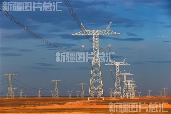 准东—皖南±1100千伏特高压直流输电工程新疆段(摄于2019年8月21日)。