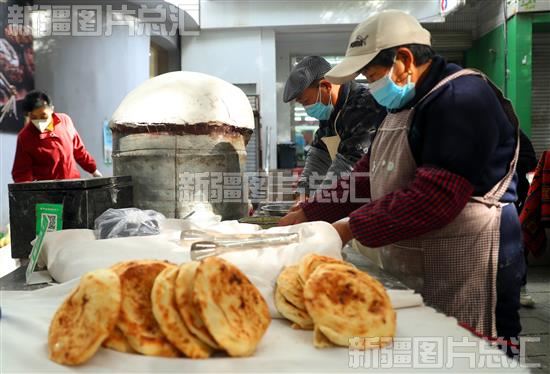 2022年10月4日,在乌鲁木齐市水磨沟区南湖南路西二巷,两位老人正在制作河南烤烧饼。