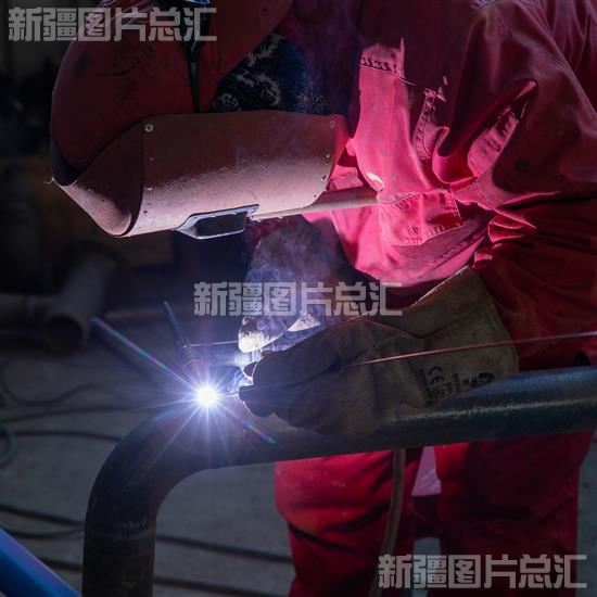 2022年10月1日中国石油新疆油田分公司吉庆油田作业区(吉木萨尔页岩油项目部)页岩油井区,工作人员坚守岗位焊接地面管线。