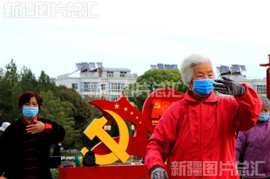 2022年10月4日,裕民县老年太极拳队的老年人在公园广场上打太极拳。