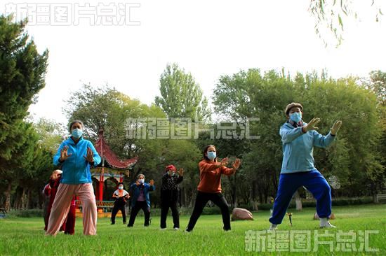 当日,裕民县天气晴好,处处金波荡漾、秋意盎然,该县老年太极拳队的老年人户外健身运动中欢度我国传统节日重阳节。