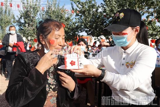 2022年10月1日,和群众一起吃国庆主题蛋糕。