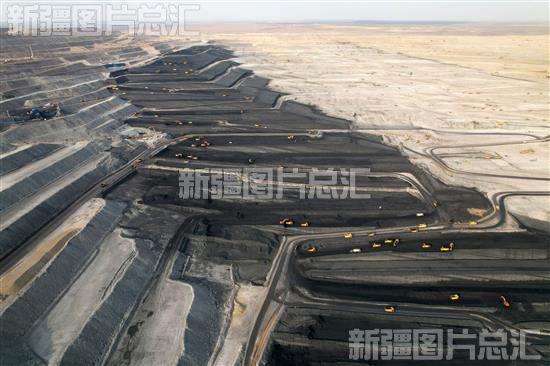 2023年5月7日,无人驾驶的各类施工车辆在特变电工新疆天池能源有限责任公司南露天煤矿进行采掘作业(无人机拍摄)。该煤矿位于新疆准东经济技术开发区,是国家核准的自治区首个千万吨级露天煤矿,拥有资源储量32.7亿吨,南露天煤矿以建设绿色矿山、数字矿山、智能矿山为标准,已完成4000万吨/年生产能力的核定。