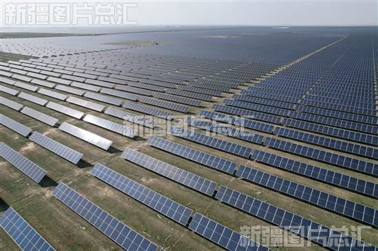 2023年5月8日,木垒哈萨克自治县光伏产业园全景(无人机拍摄)。木垒哈萨克自治县光伏产业园133万千瓦光伏项目已全部建成并投入使用,入驻企业13家,2022年发电量16.64亿千瓦时,建设投用的光伏发电项目每年可节约标准煤约53万吨,可减排二氧化碳约138万吨,为推动当地经济高质量发展发挥了巨大作用。