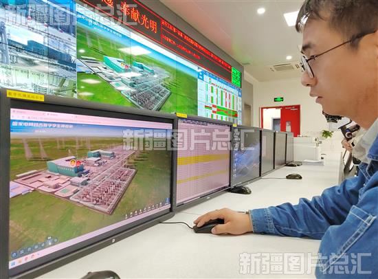 2023年5月7日,工作人员在位于新疆准东经济技术开发区的±1100千伏特高压昌吉换流站主控室查看设备运行情况。该站今年一季度输送电量达152亿千瓦时,同比增长11.2% 。