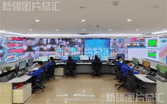 2023年5月7日,工作人员在特变电工新疆天池能源有限责任公司南露天煤矿智能化综合调度指挥中心查看生产运行情况。该煤矿位于新疆准东经济技术开发区,是国家核准的自治区首个千万吨级露天煤矿,拥有资源储量32.7亿吨,南露天煤矿以建设绿色矿山、数字矿山、智能矿山为标准,已完成4000万吨/年生产能力的核定。