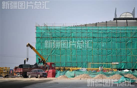 2023年5月8日,工作人员在新疆准东(奇台)机场建设项目施工。该工程总投资7.14亿元,届时将服务于奇台县、吉木萨尔县、木垒哈萨克自治县及准东经济技术开发区的公务、商务和旅游出行需求。