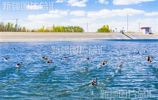 近年来,吉木萨尔县北庭镇严格落实水资源管理三条红线制度,加大对北庭国家湿地公园保护工作,生态环境质量不断好转,越来越多的鸟类成群出现在附近水库中。