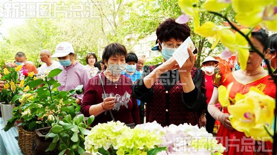 2023年5月14日,居民在活动现场参加最美盆栽评选。